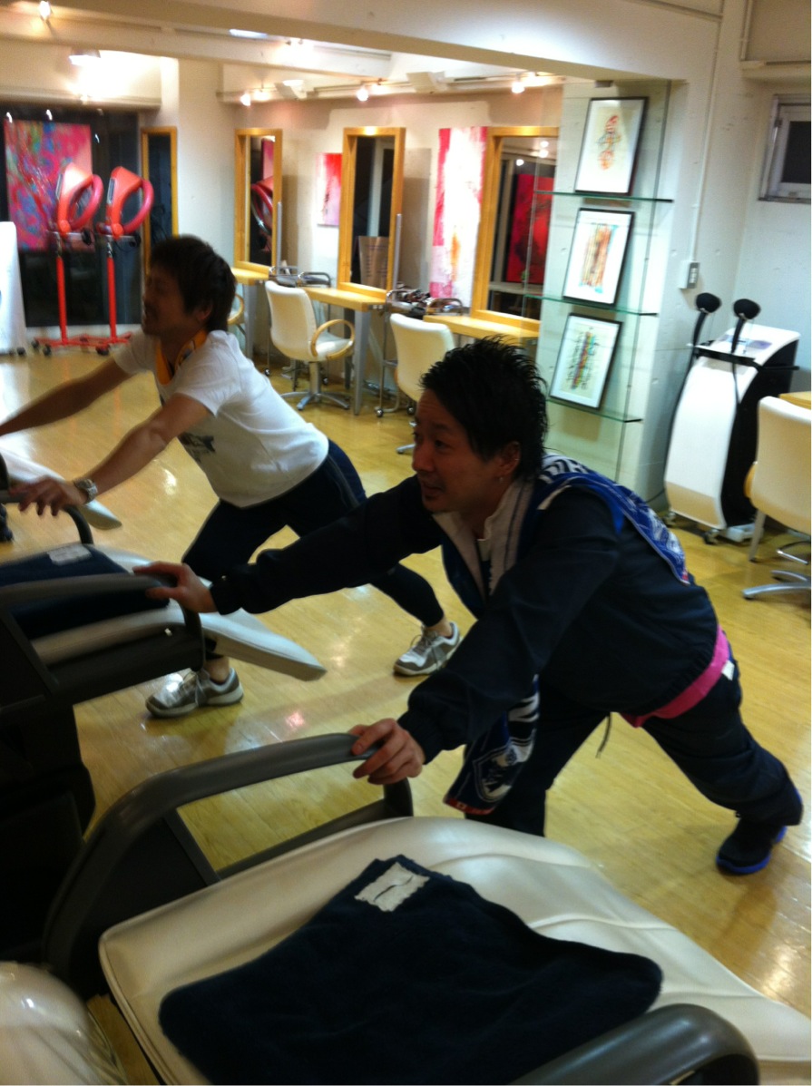 もう朝の掃除の時間から、ストレッチ~~!!